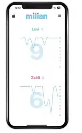 Milian App funkciói: Normál grafikon nézet Ikerbabás mód, dupla grafikon nézettel Előzmények visszakeresése Bekapcsolható sírásfigyelés Bekapcsolható folyamatos, halk visszajelzés a működésről Figyelmeztetés bluetooth kapcsolat megszakadása esetén Riasztás